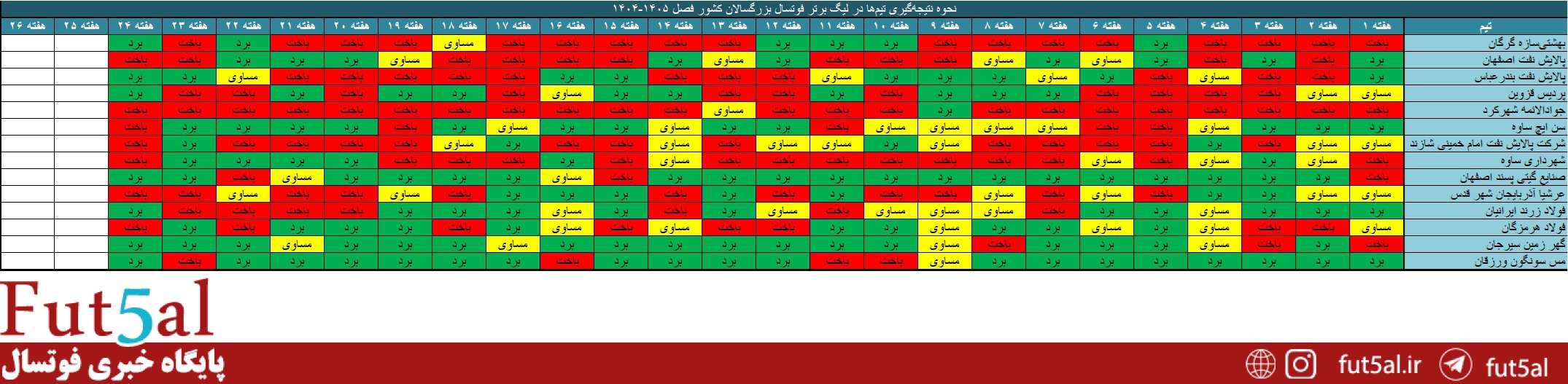 نحوه نتیجهگیری تیمها در طول فصل