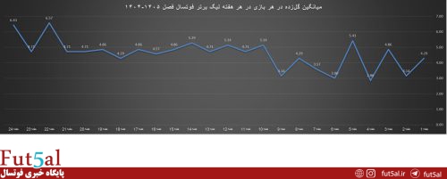 میانگین گل در هر بازی در هر هفته لیگ برتر