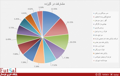 کمترین گلخورده: پالایش نفت اصفهان (۳۶ گلخورده)
